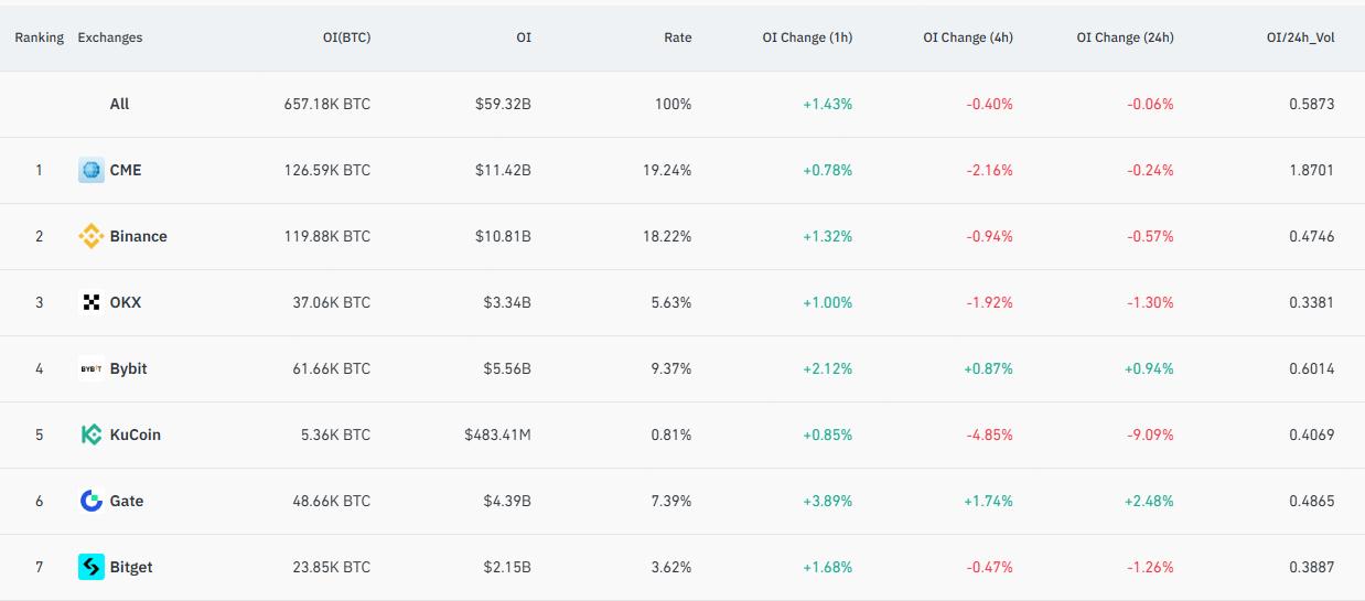 Bitcoin futures open interest across major exchanges remained broadly stable. Total open interest was nearly flat on the day, indicating no large buildup of new short positions.