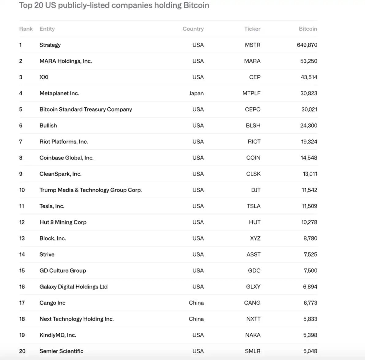 Between 2024 and 2025, the amount of Bitcoin held by publicly traded companies increased from 266,000 to 1,048,000, with a total value rising from $11.7 billion to $90.7 billion. Strategy (MSTR) held 61% of the total, and the top 10 companies controlled 84%.