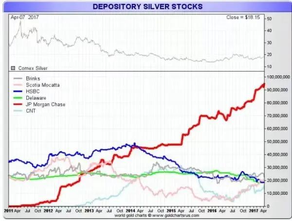More importantly, JPMorgan Chase controls more than half of the eligible silver (i.e., silver that is eligible for delivery but has not yet been registered as deliverable) market.